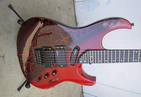 Модель калифорнийцев начинается со стандарда и как многие знают, это корпус махагони, накладка розвуд, точки на грифе, одна ручка, комплектация датчиков везде одна хамб/сингл. Следующий это Deluхе , исполнявшийся из ольхи, ebony накладкой и комплектом ЕМГ с двумя ручками, но из личного опыта, да и как видно из фотки, по заказу там мог находиться и розвуд, как и в случае с ebony мог находиться и розвуд на елите, как и в случае со стандардом мог находиться эбони по желанию заказчика. Далее вариант Elite - с бумерангами и ебонитовой накладкой, одна ручка и как отдельная вариация с окантованным грифом. Следующий будет elite Custom, отличающийся кастомовыми покрасками, кленовыми топами. Ну и завершает всё Californian setneck наиболее дорогой из всех. Во всех этих вариациях всегда есть отклонения, т.к. Хамер очень широко и очень легко работал и продолжает работать под непосредственный заказ и попадаются elite с двумя ручками, 4-мя, ольховые, равно как и делюксы ( как и в данном случае ) с розвудом, стандарды с эбони и т.д..