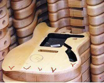 однажды мне принесли джаз-бас "типа" 1974-75 года.. человек купил его во Львове лет 15 (теперь уже 20) назад за приличные соответствующие деньги... при ближайшем рассмотрении, корпус оказался из фанеры (торцы протёрты, оч хорошо видно), гриф кондовый и дебилльный, форма башки, пятки, надписи, всё неправильно.. в общем оказался полностью самопал, который ему впиндюрили по его незнанию по самые помидоры... звучал нормально, не лом, но вполне прилично.. он работал на нём много лет и даже не подозревал... вот такой бывает шпон...