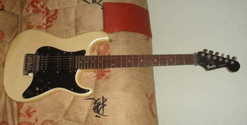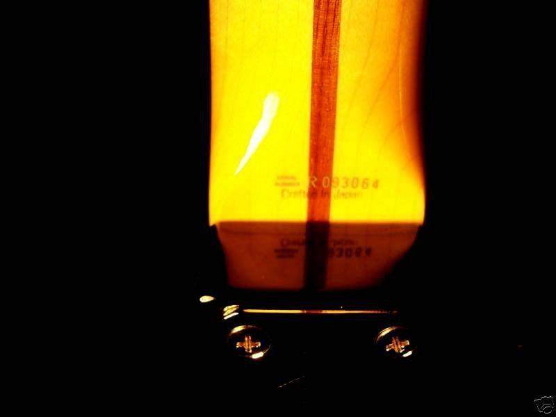 Бридж, похоже, system1 (так он по-моему обзывался), старый очень. Как раз того (средины 80-х) периода. А микротилт отсутствует или так снято? Если микротилта нет, а пластина с отверстием, то гриф неродной, хотя очень красивый. Если японец, то в торце грифа должен быть год и месяц.