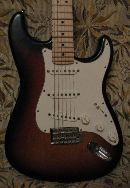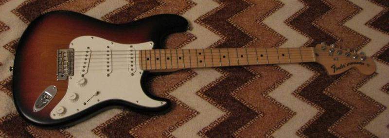 "Продается Fender Stratocaster Highway 1 MN 3SB (USA). Электрогитара, дека - ольха, гриф - клен, SSS, тремоло, цвет санберст, с мягким чехлом. Куплен в 2008 году, состояние отличное. Цена - 710$" Куплен в этом же городе (Донецк) в МузТорге и сейчас цена нового в магазе 1100$.