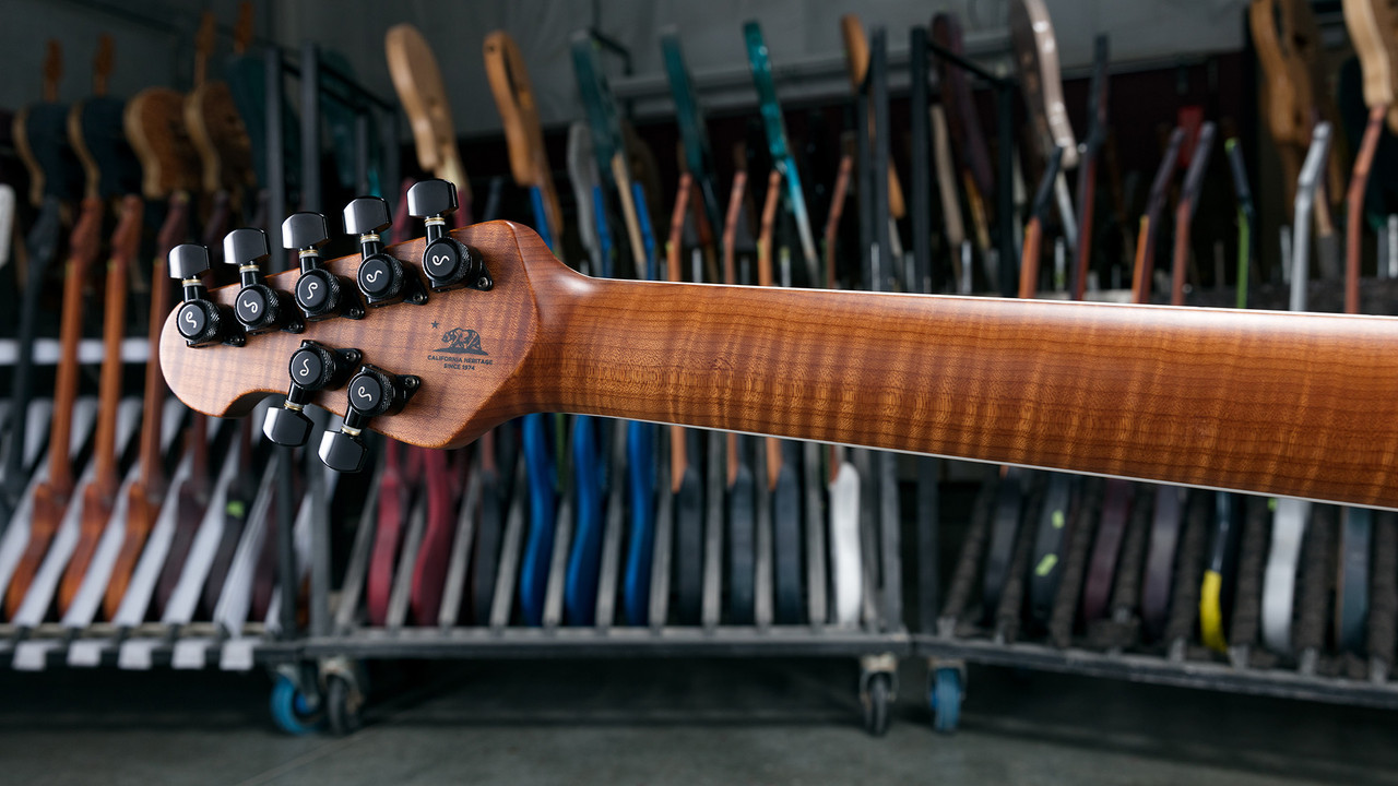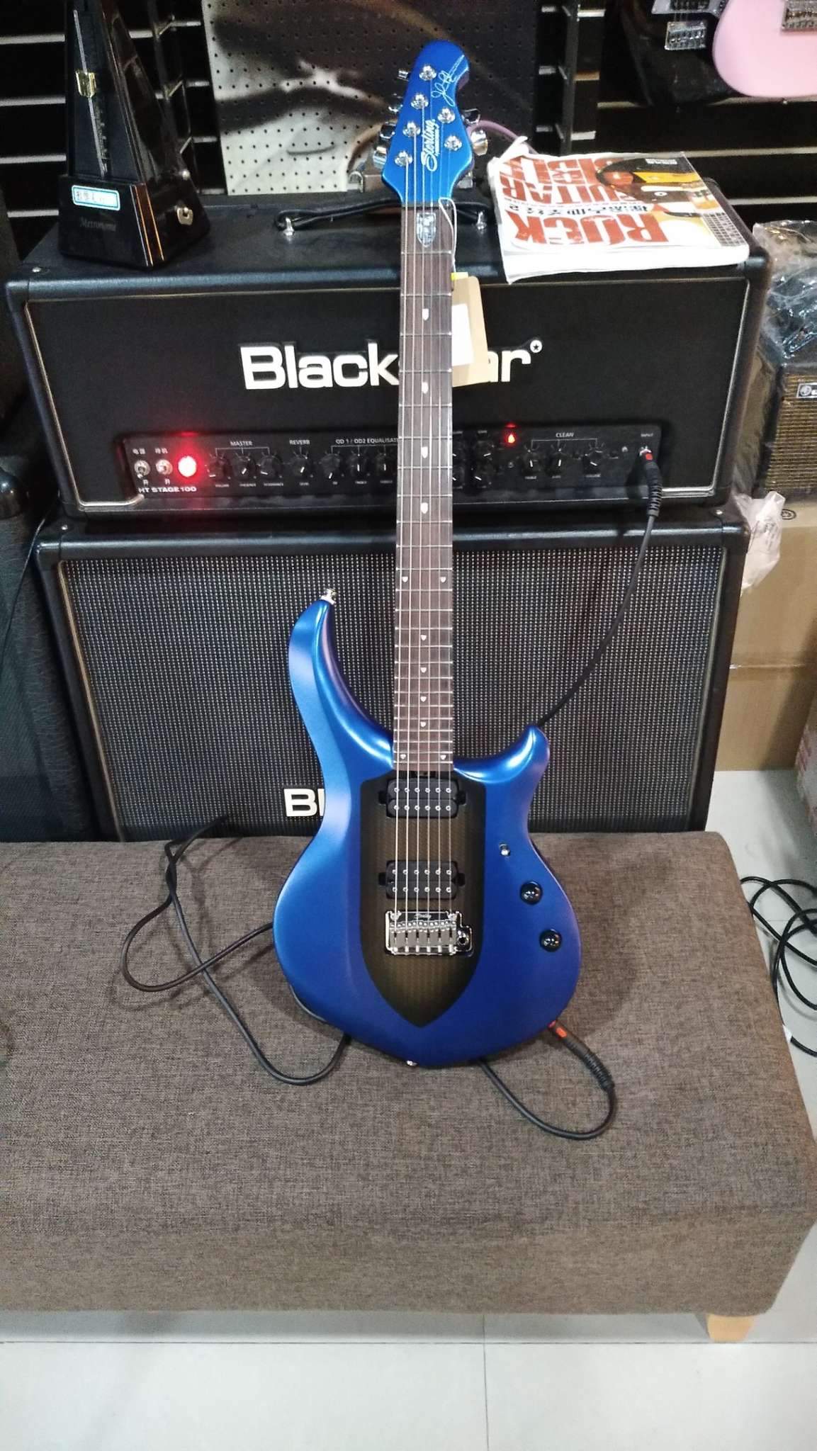 Сборка-предельно безупречная. Матовый синий финиш выполнен без единого нарекания, красивый и совсем не маркий, хотя я ожидал, что отпечатки будет собирать на ура. Технологические соединения выполнены с филигранной точностью. Лады закатаны идеально и отполированы до зеркального блеска. Рядом висел американский PRS Custom 24 с ценником овер три килобакса-Стерлинг собран КАК МИНИМУМ не хуже, а может в чём-то и получше. Весит мало, в руках ощущается очень компактно (мне не очень понравилось, как-то привык к инструментам с более крупными тушками). Ощущение, что держишь в руках очень дорогую и невероятно круто собранную вещь. Локовые колки приличные, однако вместо перлоидных бутонов стоят обычные хромовые. Впечатления не портит, но как-то привык, что обычно стоят перлоидные. Ка обычно, по утверждению продавца, гитара пришла настроенная и отстроенная, т.е. plug&play. Отстройка, как всегда, на высоте.