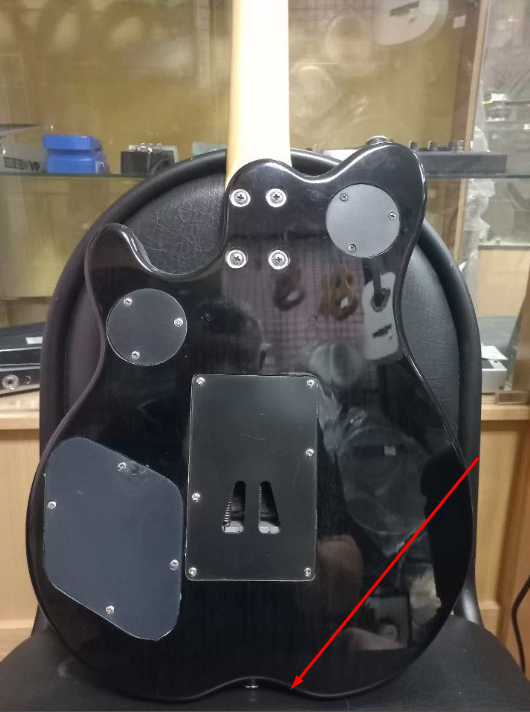 Если разобрать гитару, то в местах где не получается нормально покрасить, отполировать лак (вырезы под датчики электронику и тп, куски золотого лака отшелушиваются, а что вы спросите под ними ?