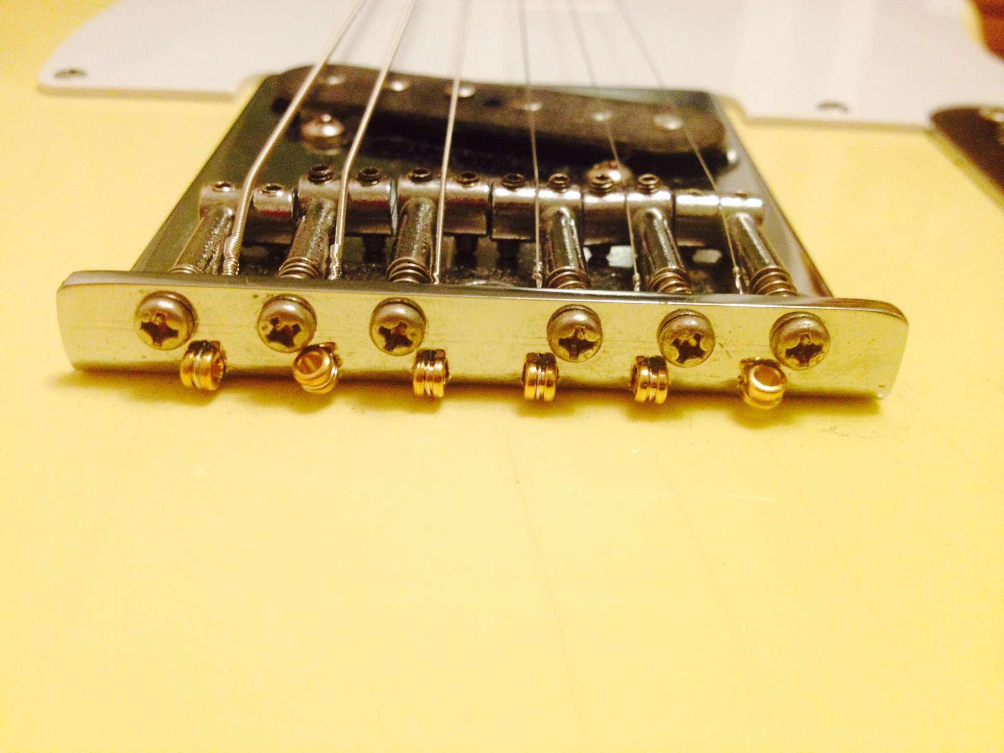 2) Струны не сквозь корпус, т.е. крепятся на бридже, который имеет 6 седел.