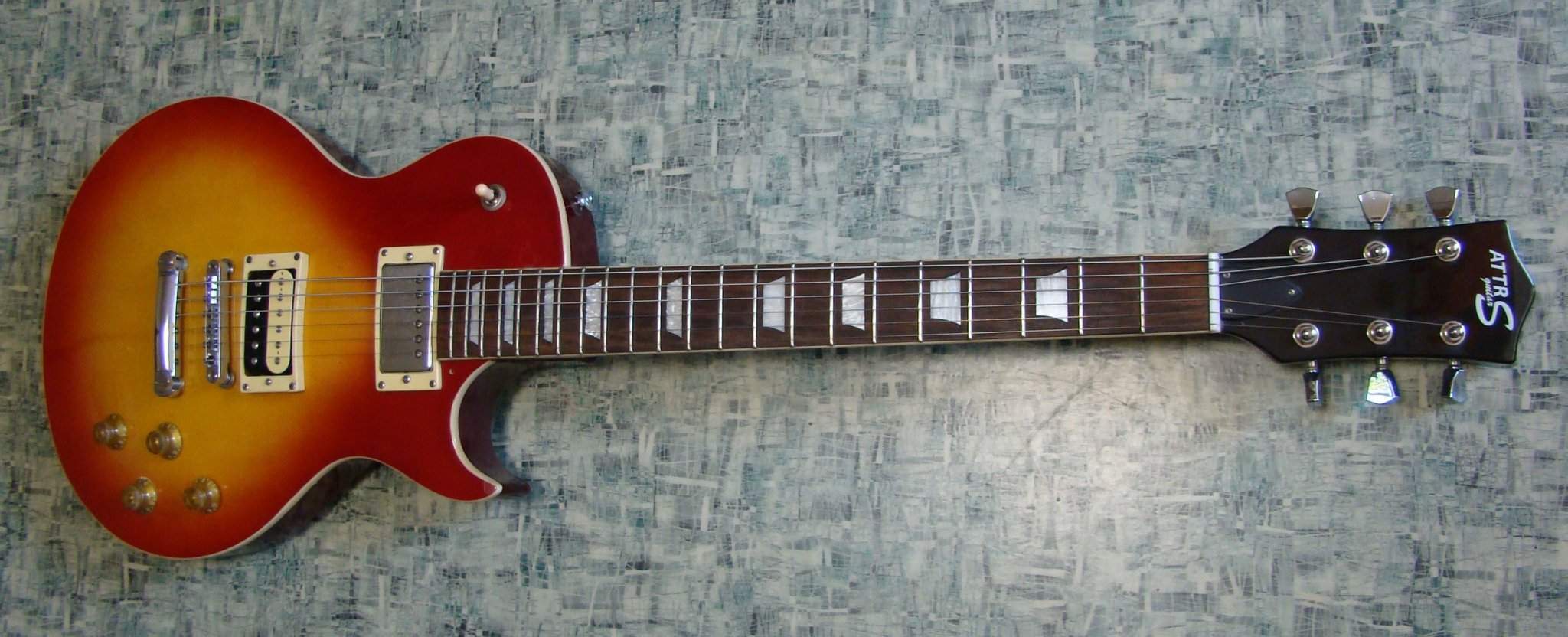 вот смотри какая штука - этот ролик тут явно не родной. обычно порог начинается там, где заканчивается накладка. и рабочая длина струны именно от этой точки и отмеряется а у тебя родной порог выкинули и поставили ролик. и теперь рабочая длина струны отмеряется от точки соприкосновения струны с роликом. ( красная линия) то есть миллиметра на 3 дальше, чем должно быть ( синяя линия)
