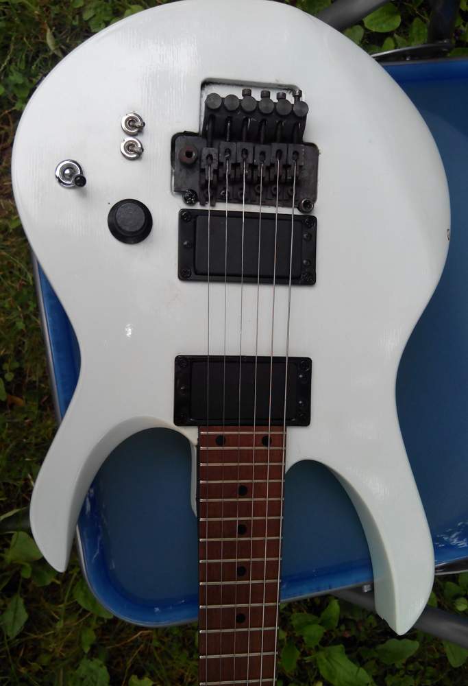 Ересь какая-то. Гриф явно фанерный с оболочкой из карбона. Но слои фанеры расположены странно. У Kubicki, например, грифы делаются из фанеры, но слои там расположены вертикально, за счет этого гриф куда меньше гнется. А тут нечто странное.