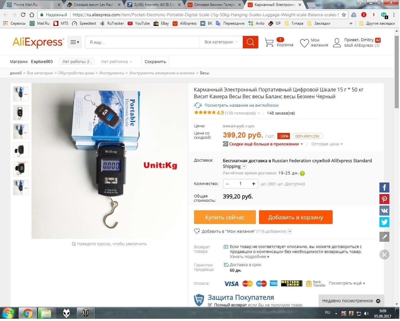 Короче, не будьте наивными, купите пусть китайский (за 300 р.) безмен изначально рассчитанный на маленькие веса (они тоже дают погрешности, но когда будете взвешивать 50 кг.)