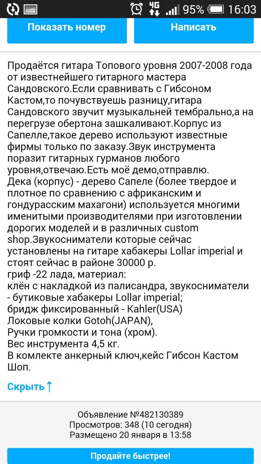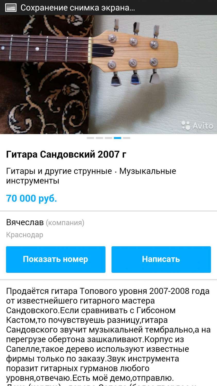 https://guitarplayer.ru/index.php?topic=325284.msg8113480#msg8113480 где я продавал/менял этот телек, цена 45000 рублей (сразу обращу внимание чтобы не было претензий, что я изменил стоимость « Последнее редактирование: Декабрь 07, 2014, 13:56:14 от terry999 »), таким образом, по Вашей логике Вячеслав, Сандовский "должен" стоить 25000 рублей, а не 70000 рублей.