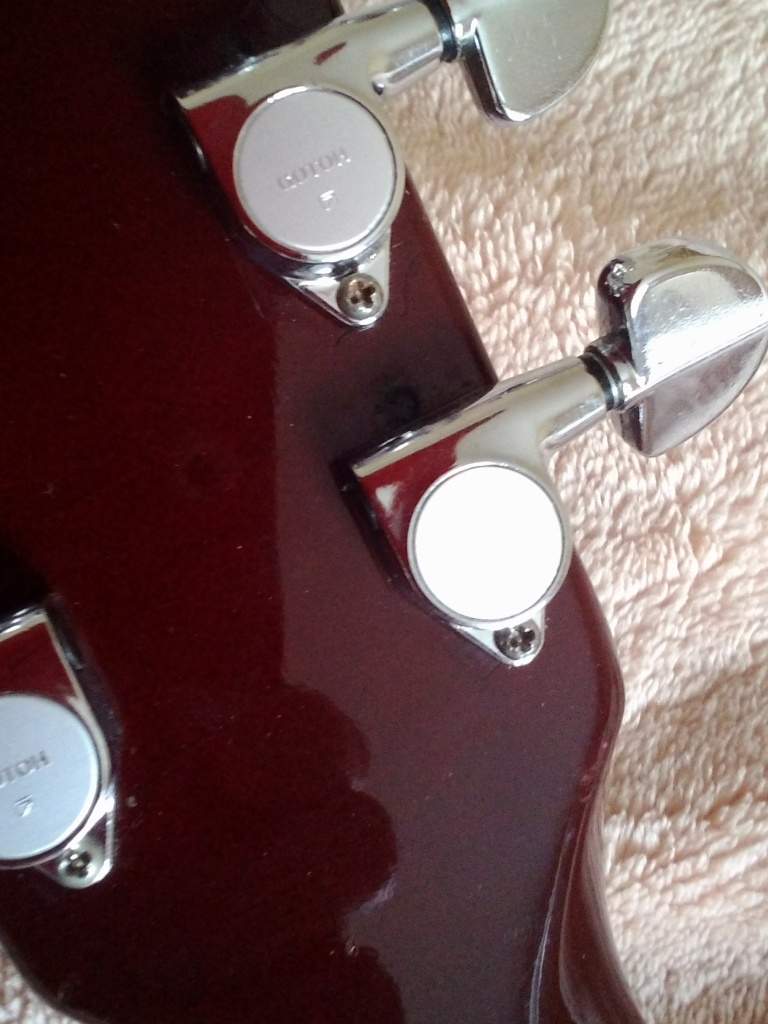 Здравствуйте.Имеется Gibson Les Paul Standart 96,цвета Wine Red,так вот,мой друг утверждает что у меня гитара без кленового топа,хотя я ни разу не видел стандартов в продаже такого же цвета и похожих годов без топа,хотя если судить по кастомам такого же цвета Gibson делает их с топом из махогани,не всегда наверное но всё же,так вот вопрос к продавцам-профессионалам типа DEAN и просто кто сталкивался с этим-может всё же быть на Standarte не кленовый топ,а из махогани?датчики снимал,там вроде видно что дерево разное...и еще одна проблема:Мужики-профессионалы,что поставить на Les Paul-штатно стояли Kluson c бутонами под слоновую кость,предыдущий хозяин заменил их на хромированные Gotoh под Grover-style.от предыдущих Kluson остались по одному отверстию на колок,которые сейчас не используются,т.к колки Gotoh крепятся одним винтом.Хочется вернуть инструменту прежний благородный вид и поставить родные колки-Kluson ставить не буду,не зря их меняют почти все хозяева Gibson,хочу локовые,но винтажного вида.Можно такие