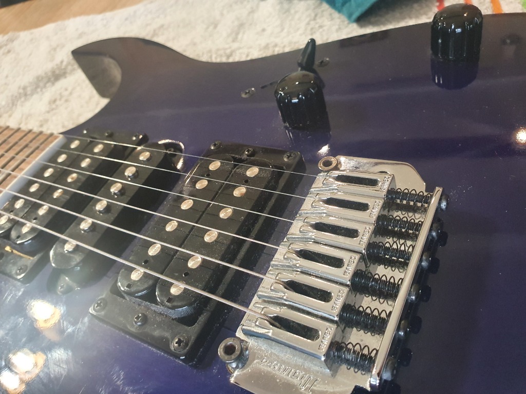 Классная, универсальная гитара, заменен звукосниматель в бридже, магниты Alnico 5. В этом ценовом диапазоне довольно сложно найти хорошую конкуренцию, все же floyd rose, hss... единственный минус - головка винта на бридже, сделана под шестигранник ключ. Наклейки отклеиваются, лак не поврежден, просто смотрится интереснее