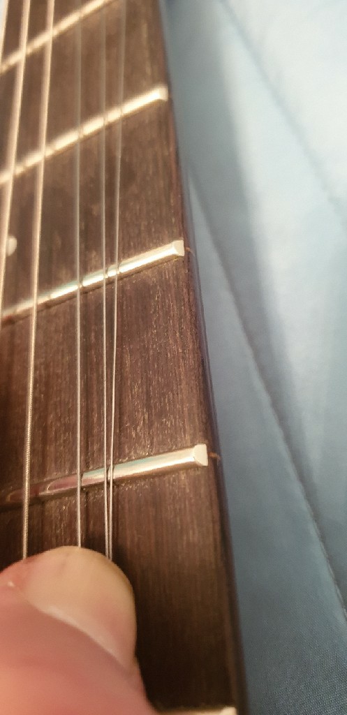 Мало бывшая в употреблении гитара висела в основном на стене в ОЧЕНЬ ХОРОШЕМ состоянии (на обратной стороне курпуса до сих пор плёнка). Струны поменяли в июле этого года, гитара хорошо настраивается, не звенит, не царапаная и почти как новая.