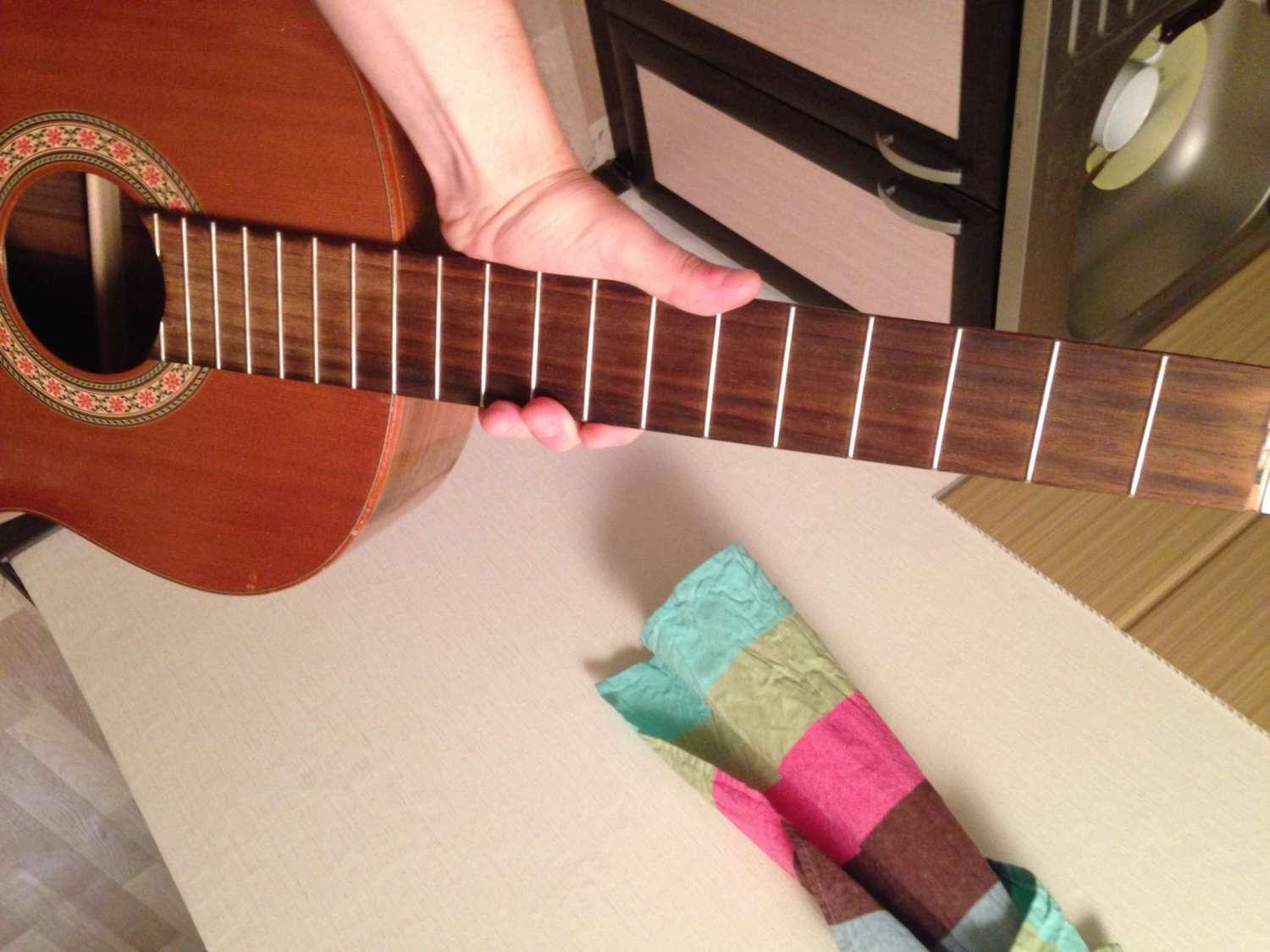 3. Оставить гитару в горизонтальном положении - пусть масло впитается.