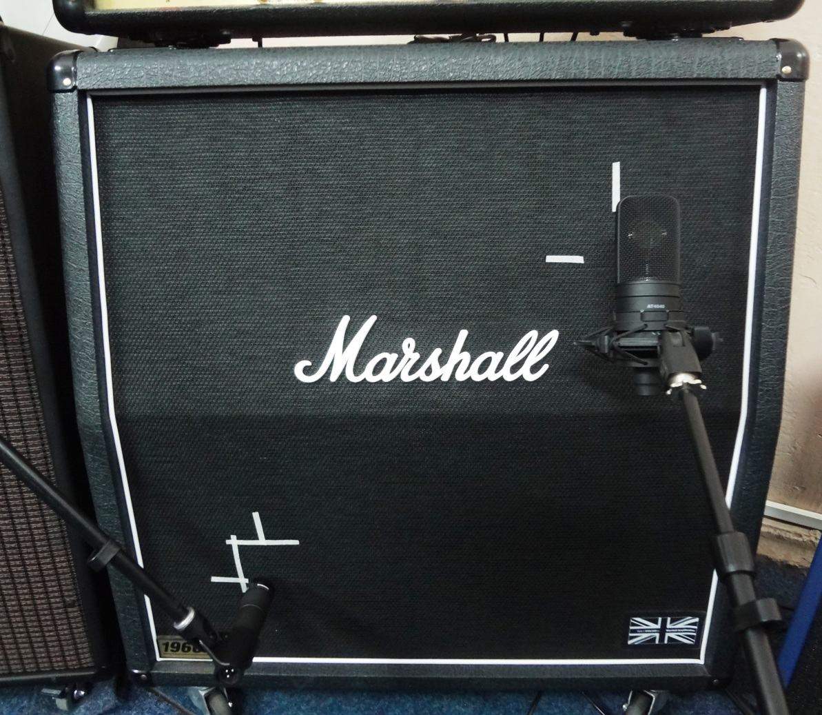 Фото постановки микрофонов, динамики Celestion в кабе маршалл.