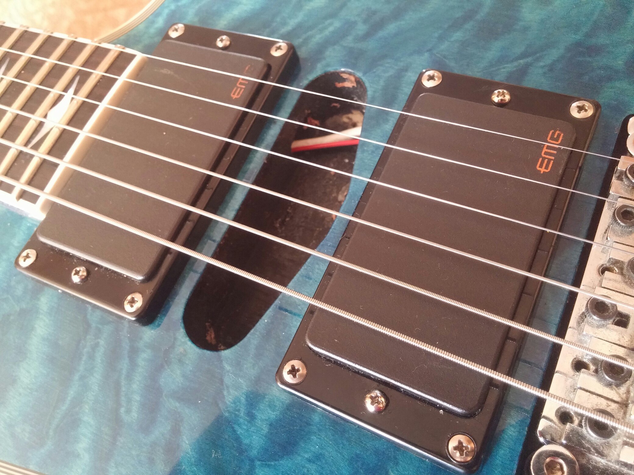 С активными датчиками EMG можно не экранировать гитару и не заземлять струны. Почитайте статью в разделе Важно http://magazin-emg.ru/install/