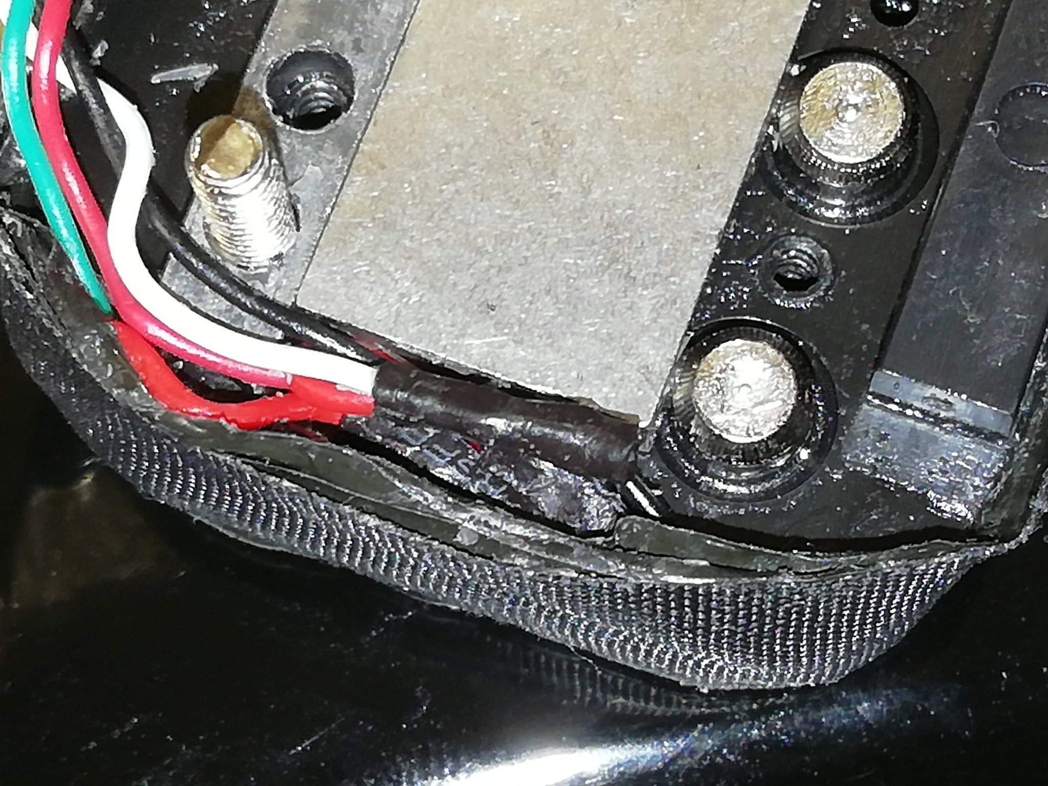 Спасибо за напоминание, хотел скинуть распайку. То что выходит из красного кабеля на первом фото- провода, идущие к хамбакеру, на втором-сам хамбакер. Я нашел незапаянное место, где не все волокна кабеля припаяны, а некоторые просто болтаются, может в них проблема. Завтра знакомый паяльщик посмотрит и я скажу, помогло или нет