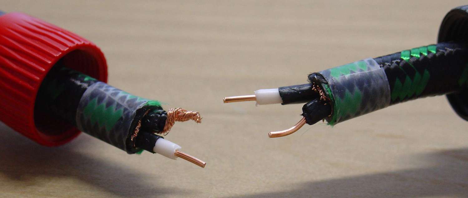flagrant, можно ссылку на магазин где покупал? 2 жилы паяются соответственно на 2 контакта джека а оплетка припаевается к земляному контакту только с одной стороны - получается так называемый направленный кабель.