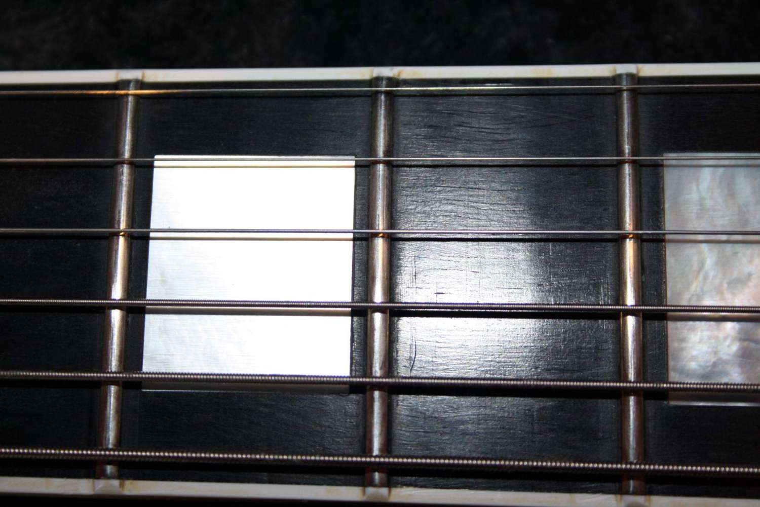 Извини, но речь все же о накладках а не о гитарах (тут понятно),просто на данный момент с накдадкой из эбони только ЛПК, был еще в свое время белый экплорер, но там тоже эбони выглядел,как эбони!Вот попробовал сфоткать со вспышкой,а так просто сплошная чернота: