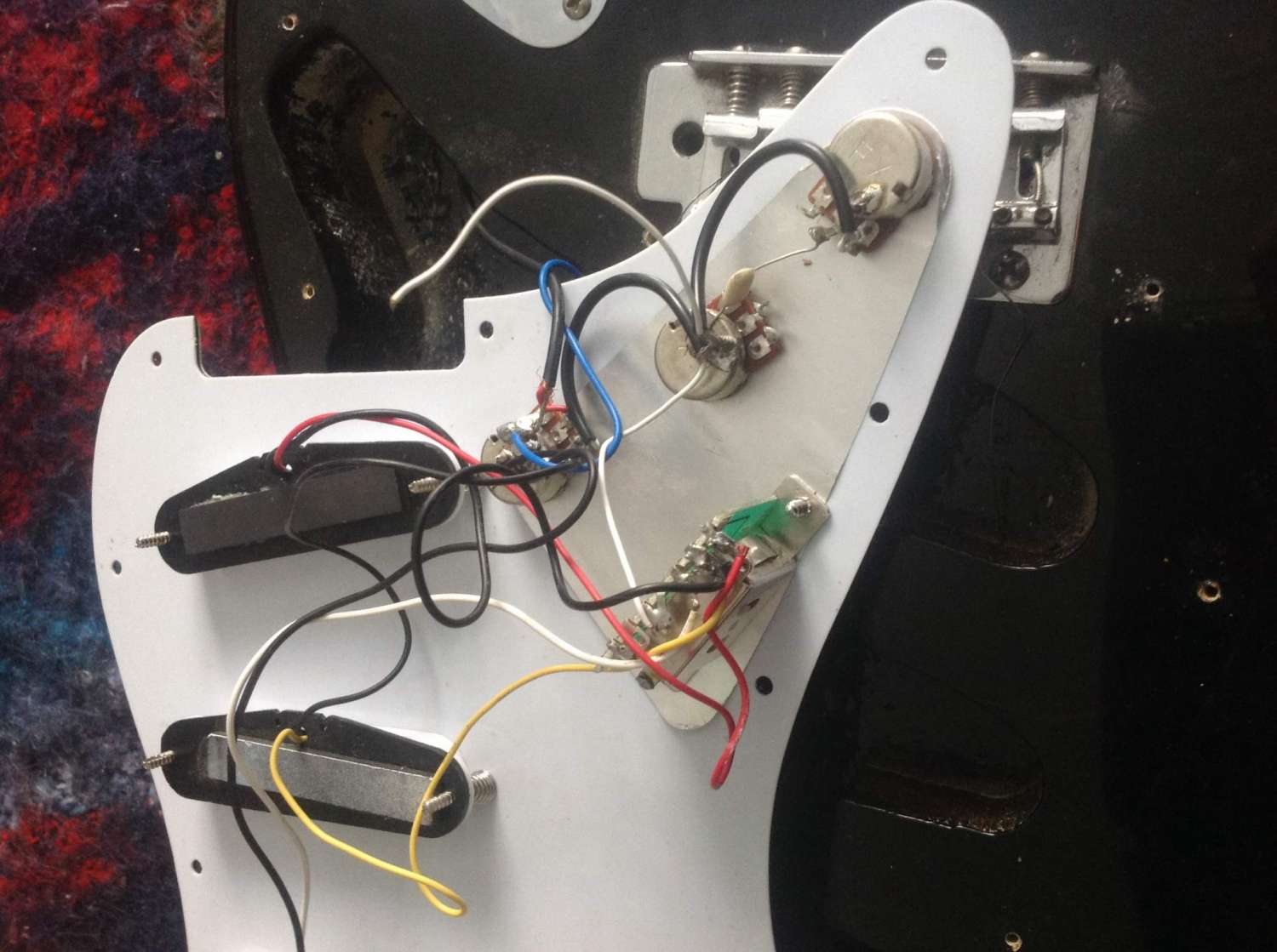 Звукосниматели перестали снимать звук, когда снял пикгард, то обнаружил оторванный проводок исходящий из крутилки с надписью "tone". Подскажите куда надо припаять провод и как найти причину пропажи звука. P.s. Раньше звукосниматели были перепаяны по схеме отличной от оригинала