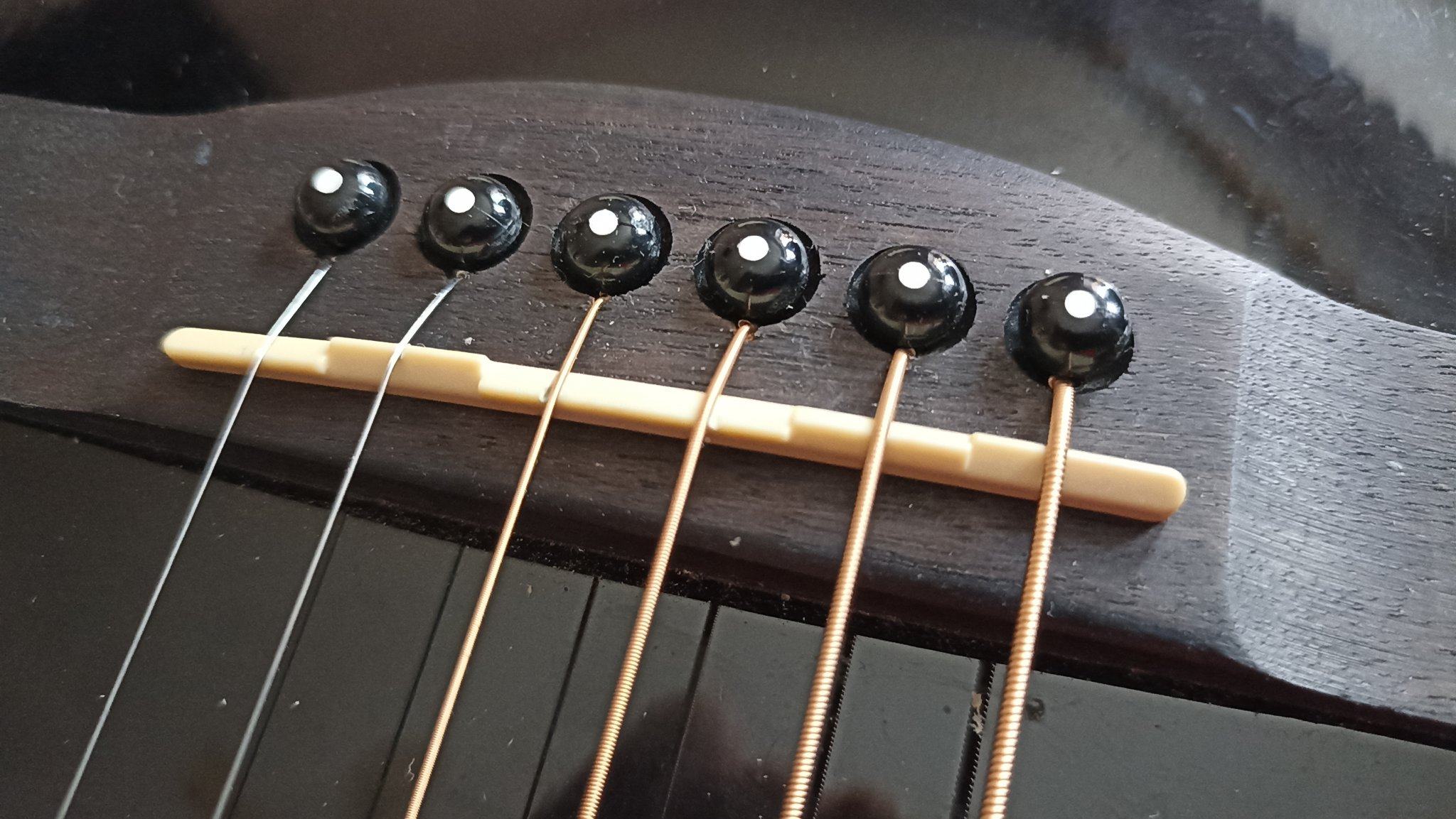 Всем привет! Пытался достичь комфортной высоты струн на электроакустике Greg Bennett GD-100SCE/BK после установки 11-х струн, уменьшая высоту нижнего порожка, в итоге промахнулся и сточил лишнего, струны стали дребезжать в районе 8-14 ладов, теперь надо новый порожек повыше.