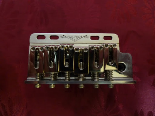 1) это сам принцип строения тремоло. Крепление к дэке не "плавающее" как у всех известных типов тремоло кроме Bigsby, а "на мертво". То есть, движущаяся часть пластины соединена с дэкой пластиной из пружинной стали (они называют это BLADE - отсюда и название), которая крепится к дэке четырьмя винтами и передает резонанс на дерево постоянно и через очень широкий и массивный "канал", а не в точках соприкосновения болтов и ножей как в 2х болтовках или флойдах, и не в 6 точках контакта болтов и пластины как в 6-болтовке. Здесь все значительно солиднее и правильнее. И эта конструкция на самом деле оказывает настолько положительное влияние на звук, что я испытал настоящее удивление. Обратите внимание на фото - здесь более-менее понятен смысл конструкции.