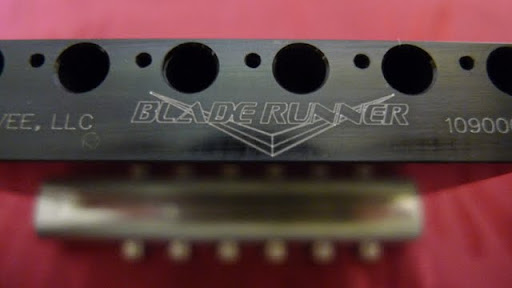Super-Vee & BladeRunner Stratocaster Tremolo Replacement Bridge - Blade Action Revealed!!!2) Массивный (но не слишком) "киль" сустейн-блока. О влиянии массы и материала сустейн-блока на звук можно диссертации писать. Так вот, эти ребята, похоже имеют ученые степени в данном вопросе. Подобрали они и массу и материал (тяжелая дюраль) просто отлично. Влияние еще как чувствуется. Звук стал самую малость "теплее", но не потерял ни грамма "стекла". Вот так он выглядит: