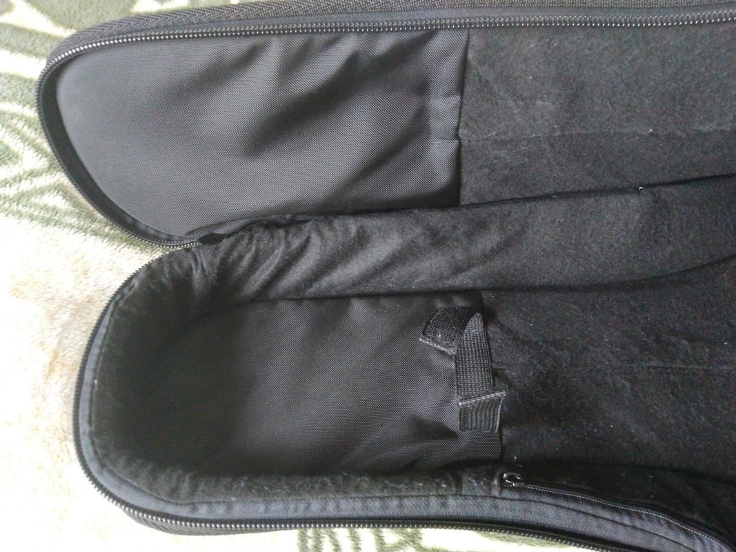Внутри чехол мягкий, ткань: искусственный войлок. Наполнитель чехла-вспененный полиэтилен, довольно плотный. Толщина стенок 20мм.Весь наполнитель чехла, кроме карманного, можно высунуть. Для крепления грифа имеется лямка на липучке. Подушечки для грифа нет. Внутри, в том месте, где помещается головка грифа, ткань усилена для предотвращения разрыва струнами с обеих сторон.
