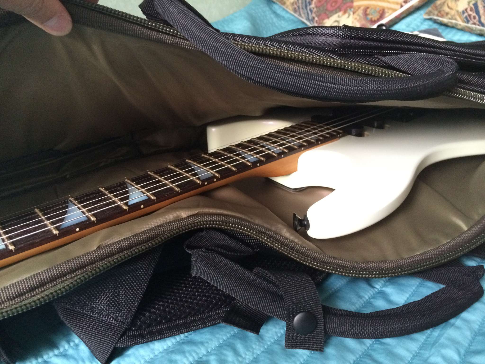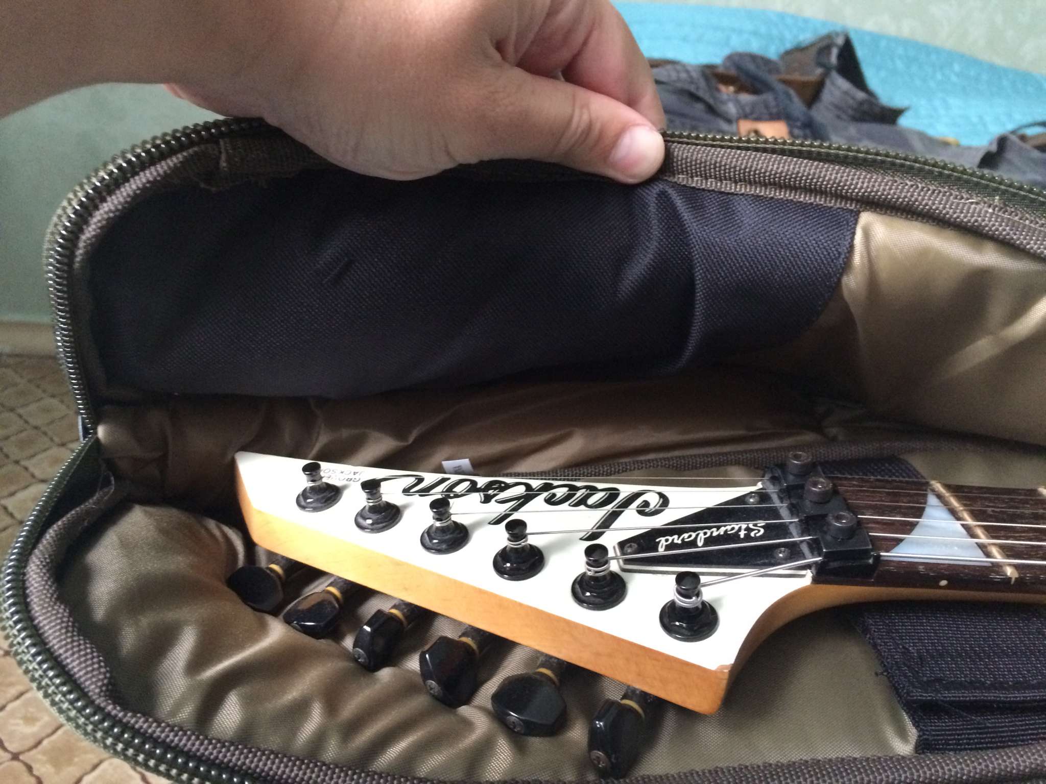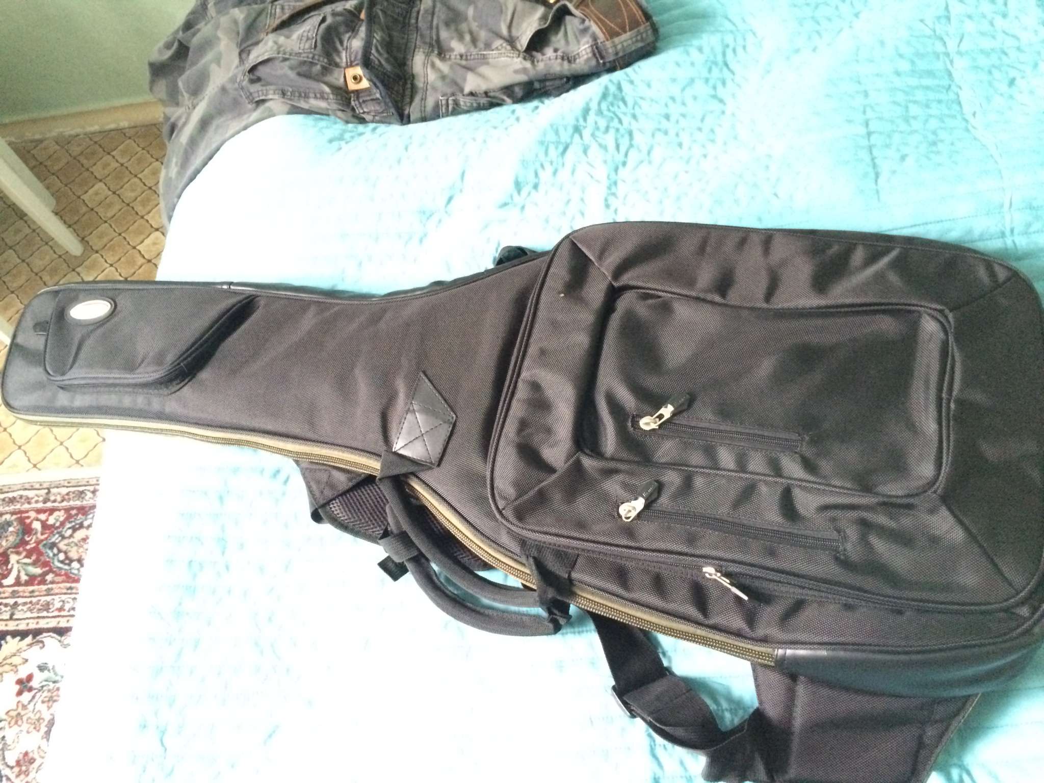 Куча свистелок перде.. кармашков, вставочек из плотного материала где машинка и колки, вставочка под кабеля и педальки.