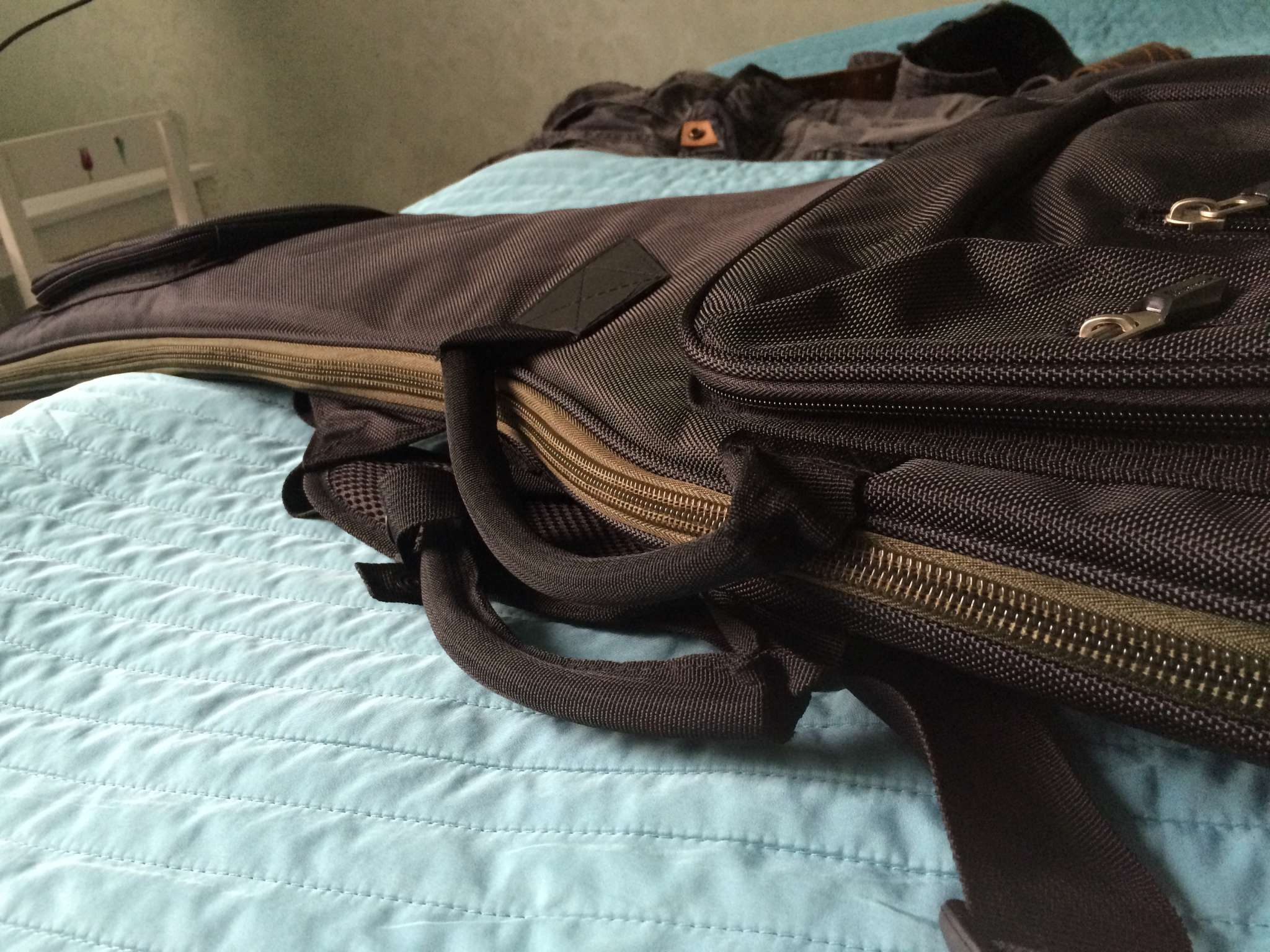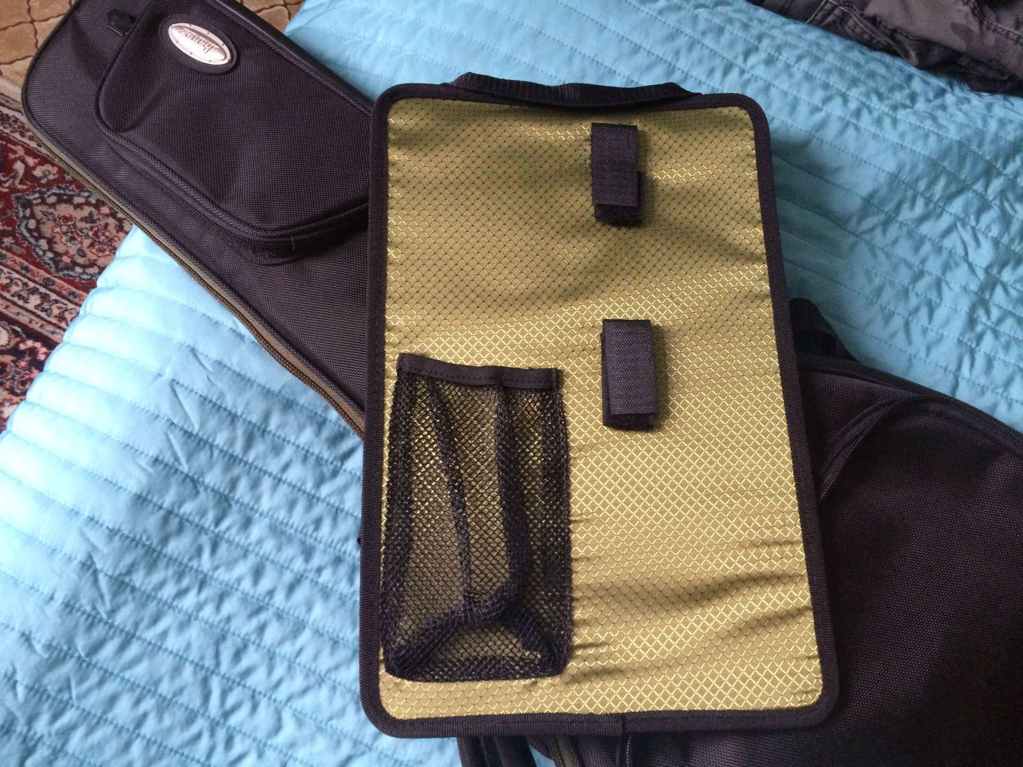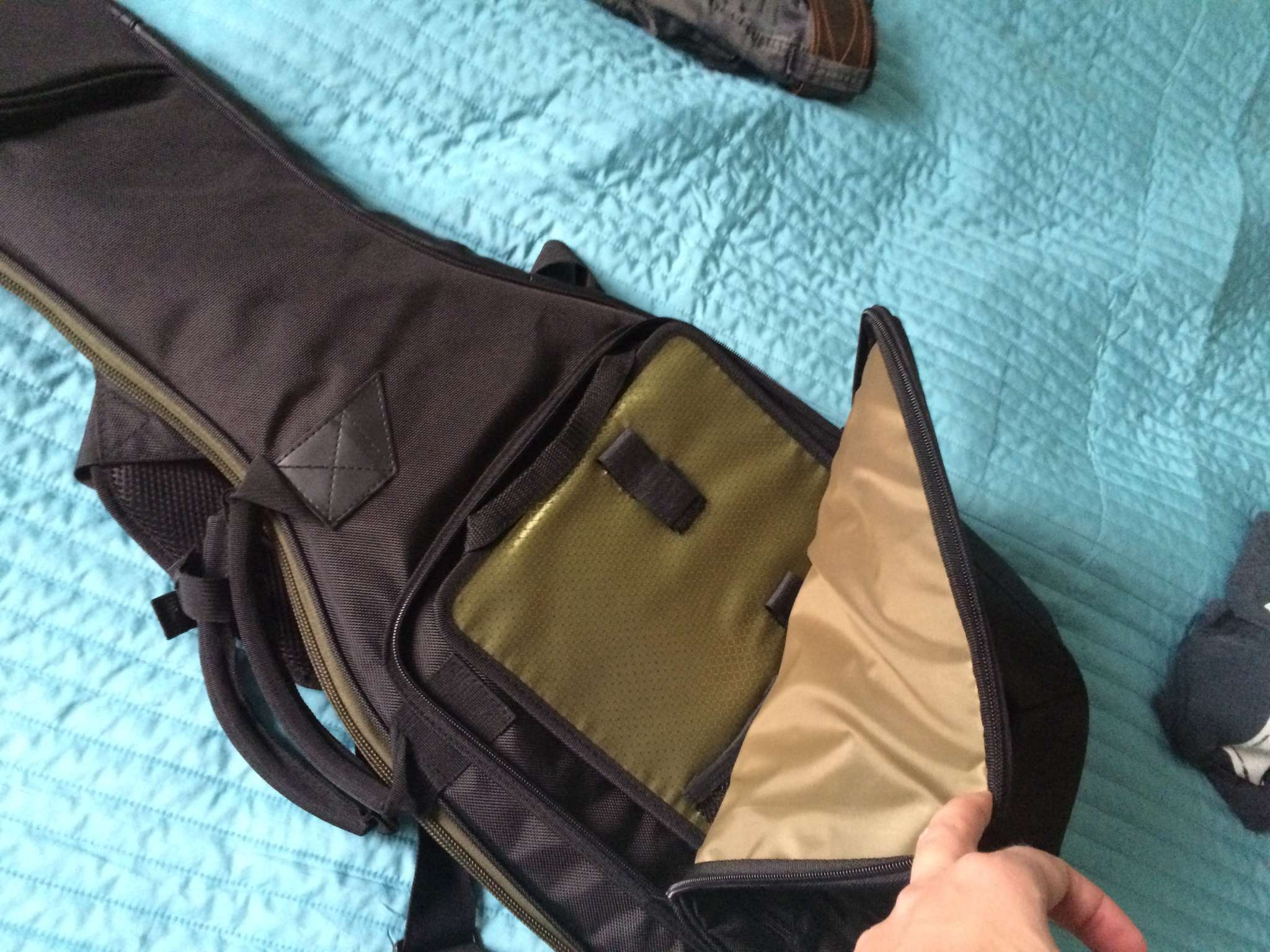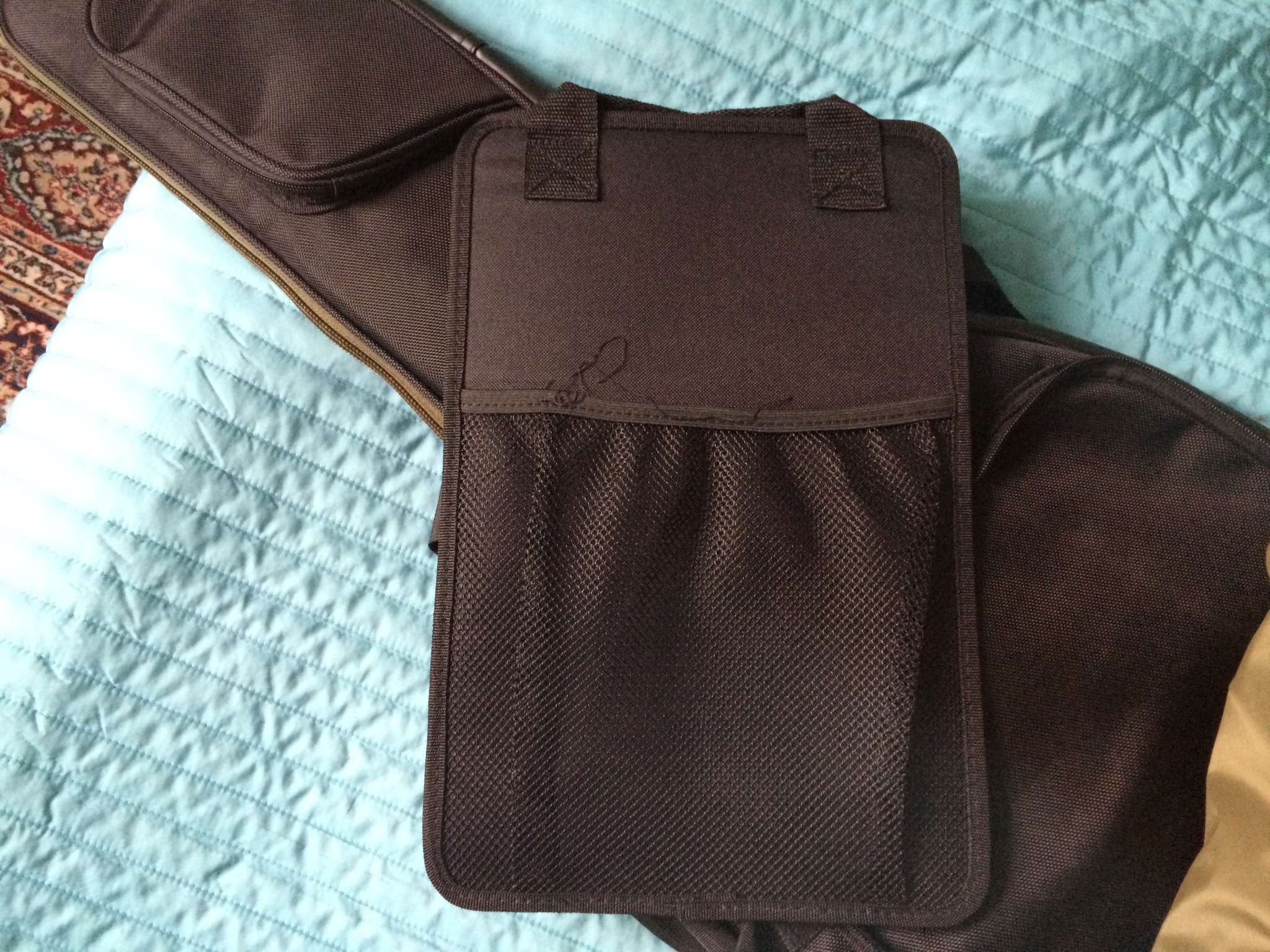 Куча свистелок перде.. кармашков, вставочек из плотного материала где машинка и колки, вставочка под кабеля и педальки.