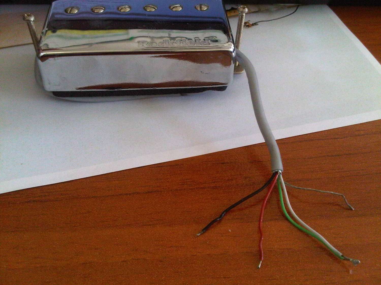 Ни черта не шарю в пайке, срочно объясните пожалуйста на пальцах! Есть хамбакер c пятью проводами, есть output jack с четырьмя контактами, какой провод куда припаять, чтоб работало? Напрямую, без регуляторов! Фото хама, кодировки и гнезда во вложении. В инете нашел по рокфилдам, так: North start - black, north finish - white, south start - red, south finish - green. Пятый без оплетки провод (земля?). Но вот что тут к чему я запутался совсем)