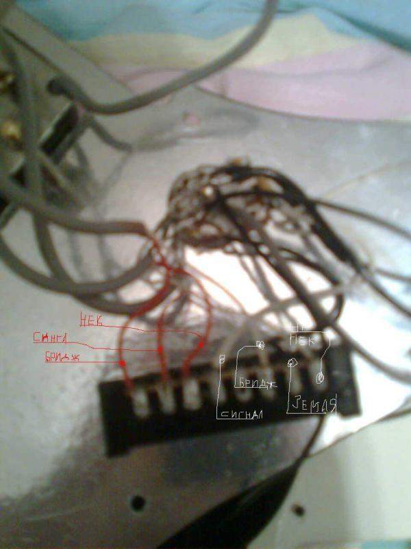 от там где у тебя земля, попробуй сингл белый припаять и судя по схеме, выход на потц будет 3 контакт слева, перепаивай...