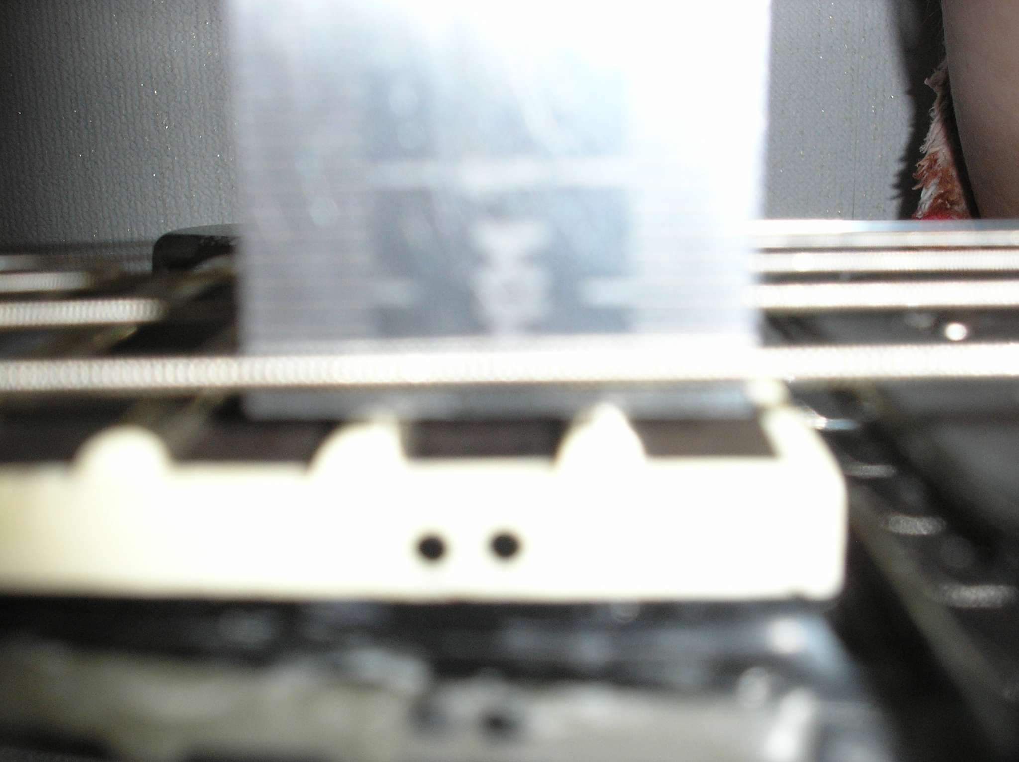 После отстройки решил поиграть - ничего не дребезжало! Ну конечно очень слабые подзвякивания есть, когда долблю рифы на шестой струне, а так ничего в динамик не идет! Просто сам офигел! Видимо дело в кривых руках, слишком сильно погружаю медиатор в струны. Зато прогиб анкера сделал большой - 0,3 мм примерно, может даже чуть больше - 0,3 мм щуп влазает свободно, 0, 35мм уже не лезет.