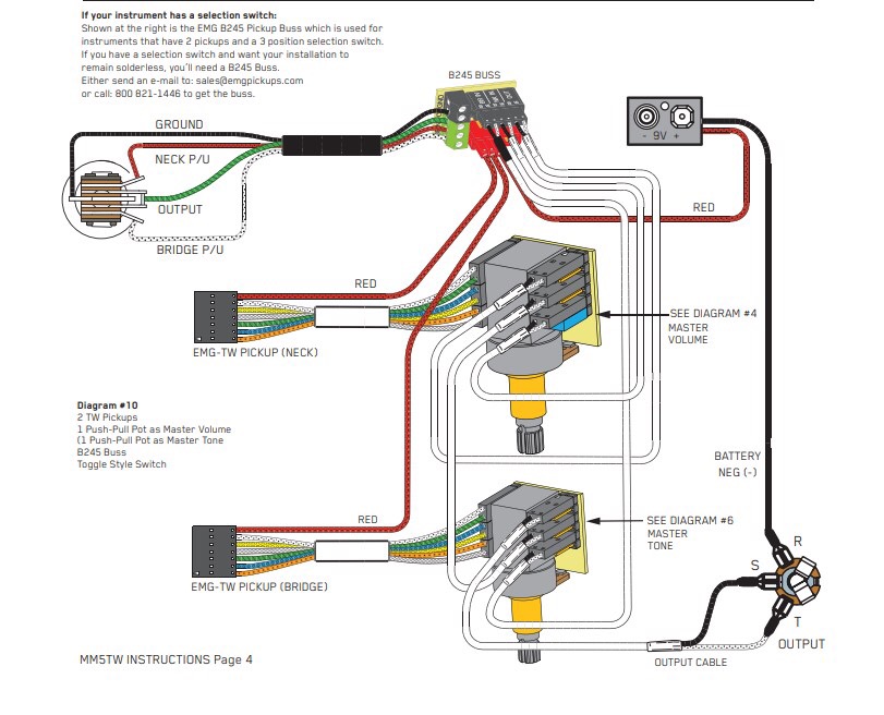 Здравствуйте уважаемые гитаристы. Довольно срочный вопрос, Завтра собираюсь паять новые звукосниматели EMG 707tw(с отсечкой) в свою гитару, паяльник в руках держать умею, но вот что куда паять совсем не шарю. Мне нужно чтобы была одна громкость, один тон и чтобы обе ручки были пуш-пул. Нашел нужную схему в каком-то руководстве, но вот беда: она для новомодных соединений где не нужно паять, а те запчасти что я имею требуют пайки каждого отдельного провода. Но не беда: я вроде как нашел подходящую схему старого образца где расписан каждый проводочек. Но есть несколько вопросов: