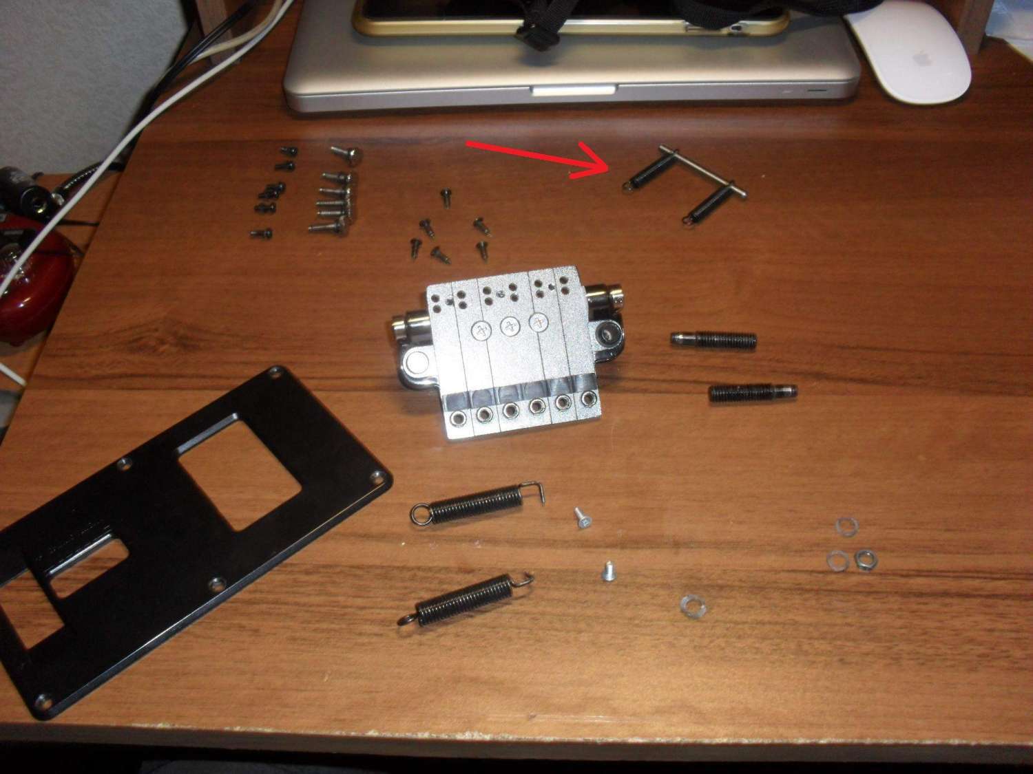 Ставим пружины, далее настраиваем высоту струн закручивая или выкручивая опоры и настраиваем как на флойде мензуру.