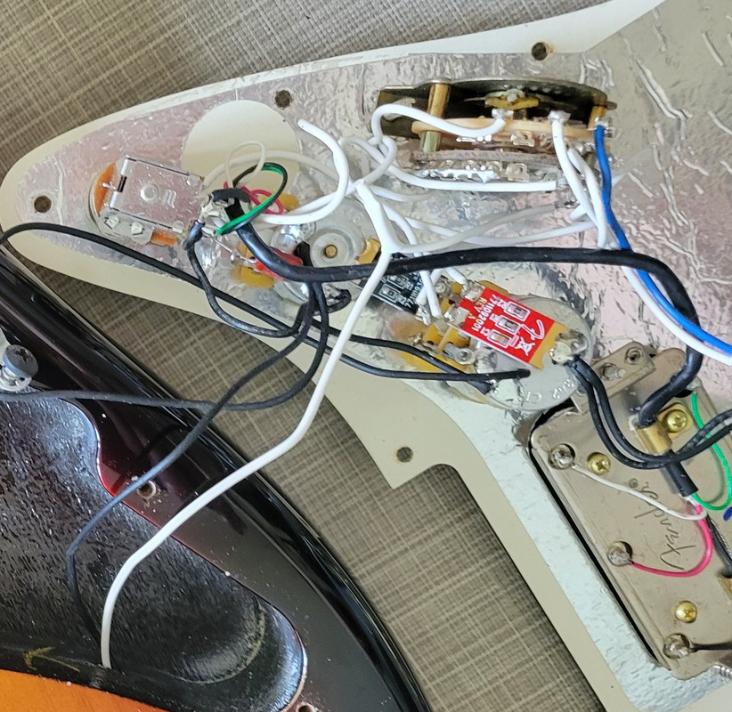 Судя по рисунку и фото громкость сдвоенная. Каждая платка напаяна на выводы своей половинки громкости. Обе работают компенсаторами. ну и подключаются в зависимости от положения 5-позиционника и пуш-пула. Там надо разбираться со всеми режимами. Думаю, для хамба там 500к, для всех остальных режимов и отсечек 250к.