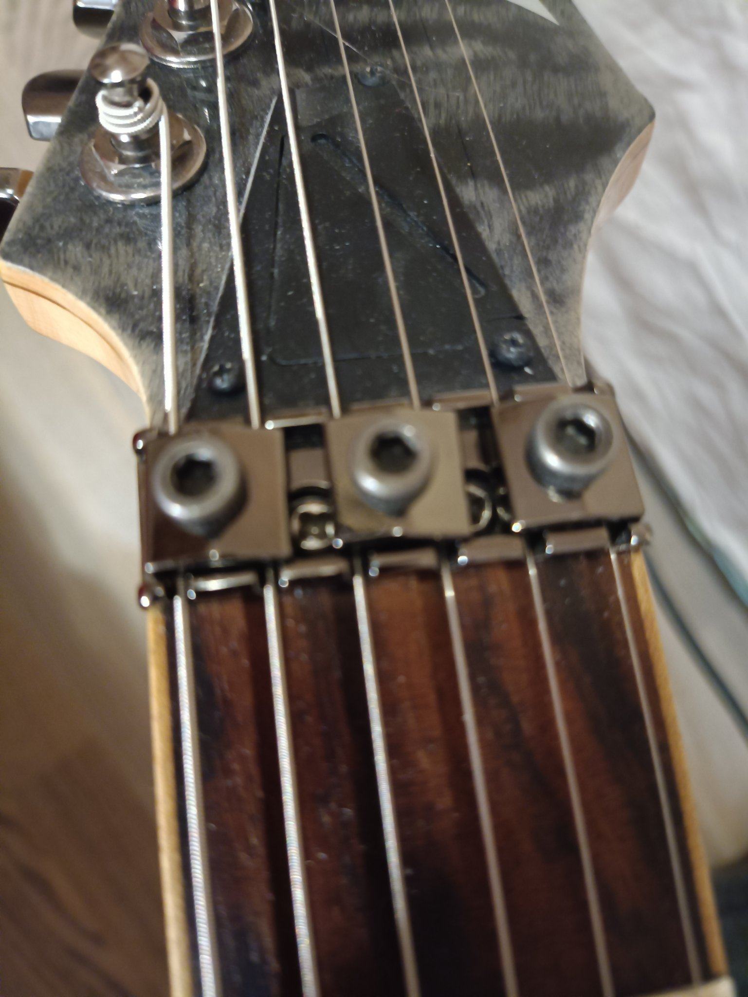 на авось покрутил эту хрень вроде получше стало, но после рычага в пол в обе стороны струны низят на 10 примерно 6 струна, 5 на 8, 4 , 2,1 не на много, а 3 вообще строй сохранила