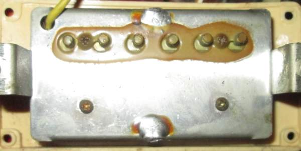 Скорее всего это чтото типа парафина. Катушка звукоснимателя заливается парафинам, чтоб небыло микрофоного эффекта или чёто такого.