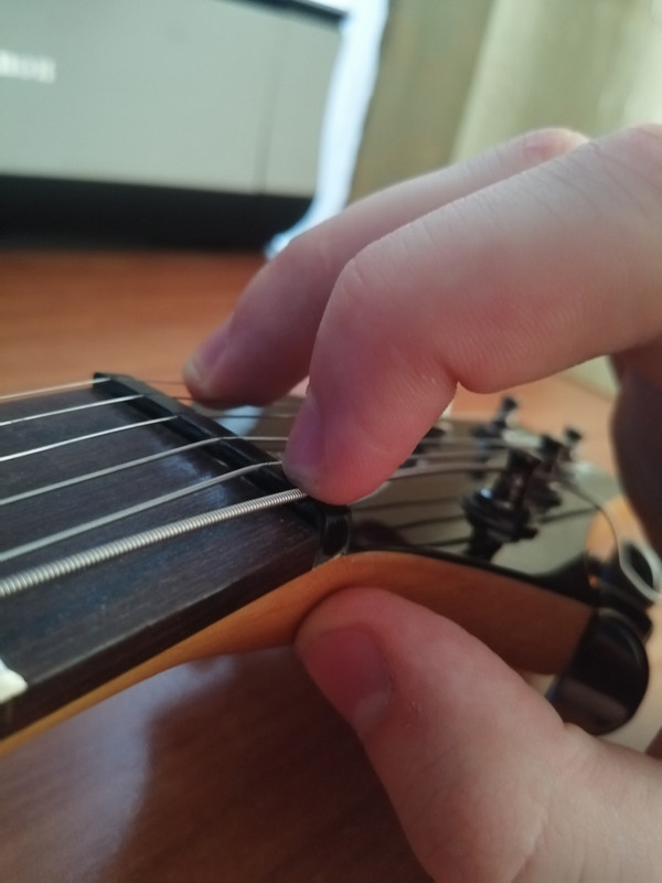 Purity, ну я же написал - натяни руками чтобы не болталось и отмеряй. Руками ты струну особо не растянешь, так что разница между средним усилием и очень большим небольшая.