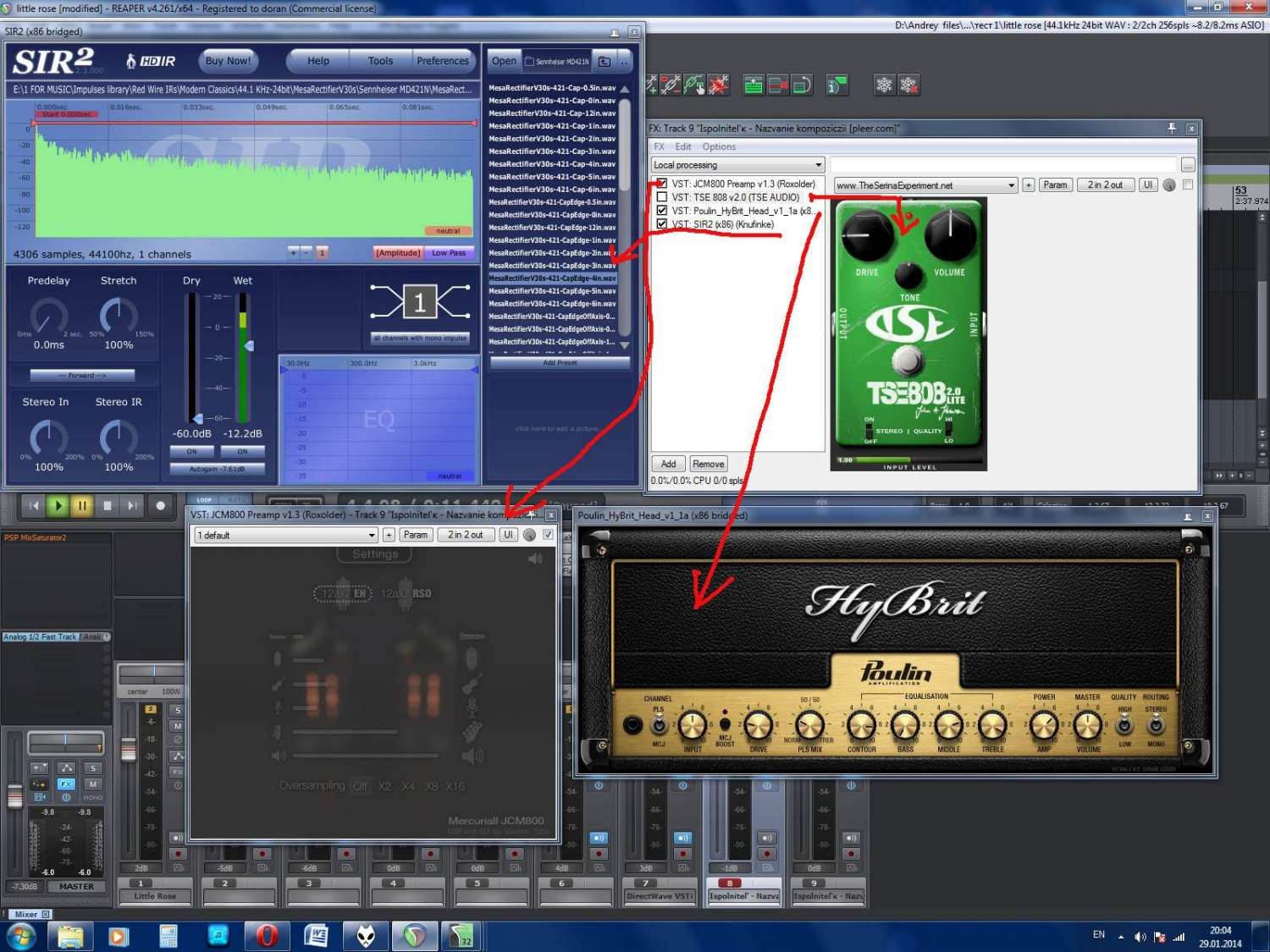1. jcm800 preamp v1.3. ЭТО ФРИВАРНЫЙ ПЛАГИН( все инструкции есть на сайте ), он симулирует предуселитель,его можно ставить в место 456 или Хайбрита его НО я ставлю для большей фокусировки частот..( поймешь о чем я , когда покрутишь его )