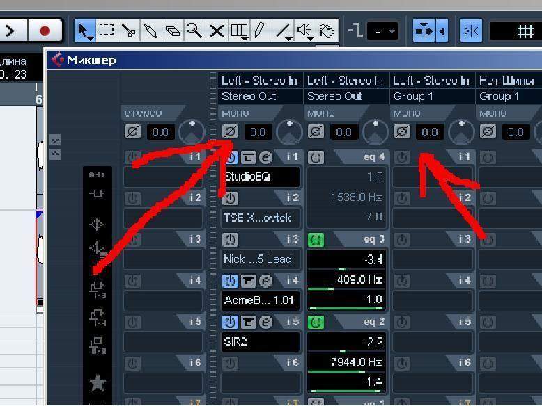 ээ.. как там в нюхе я конкретно не подскажу, так как не пользуюсь, хотя... вообще все это и не надо, чтобы инвертировать фазу одного из каналов в стерео-сигнале, надо повешать на трек какой-нить плагин, где отдельно для левого или правого канала можно инвертировать фазу, например тот же izotope ozone, вкладка multiband stereo imaging, надо активировать "show сhannel ops." и там поставить одну из галочек, либо на invert L либо invert R, разницы нет какую, но только одну, либо эл либо эр...
