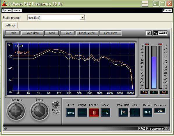 И так, препарируем. Даже на слух слышно - провалена середина в миксе, прут верха и низы. Но плотности общей веравно нет.Распространенная общая ошибка, причем что самое похабное даже в среде концертных звукорежей. На картинке №1 спектограмма исследуемого микса, там все видно. Спектр должен быть ровным, плавно нисходить с низких к высоким, плавным склоном, без холммов и впадин.