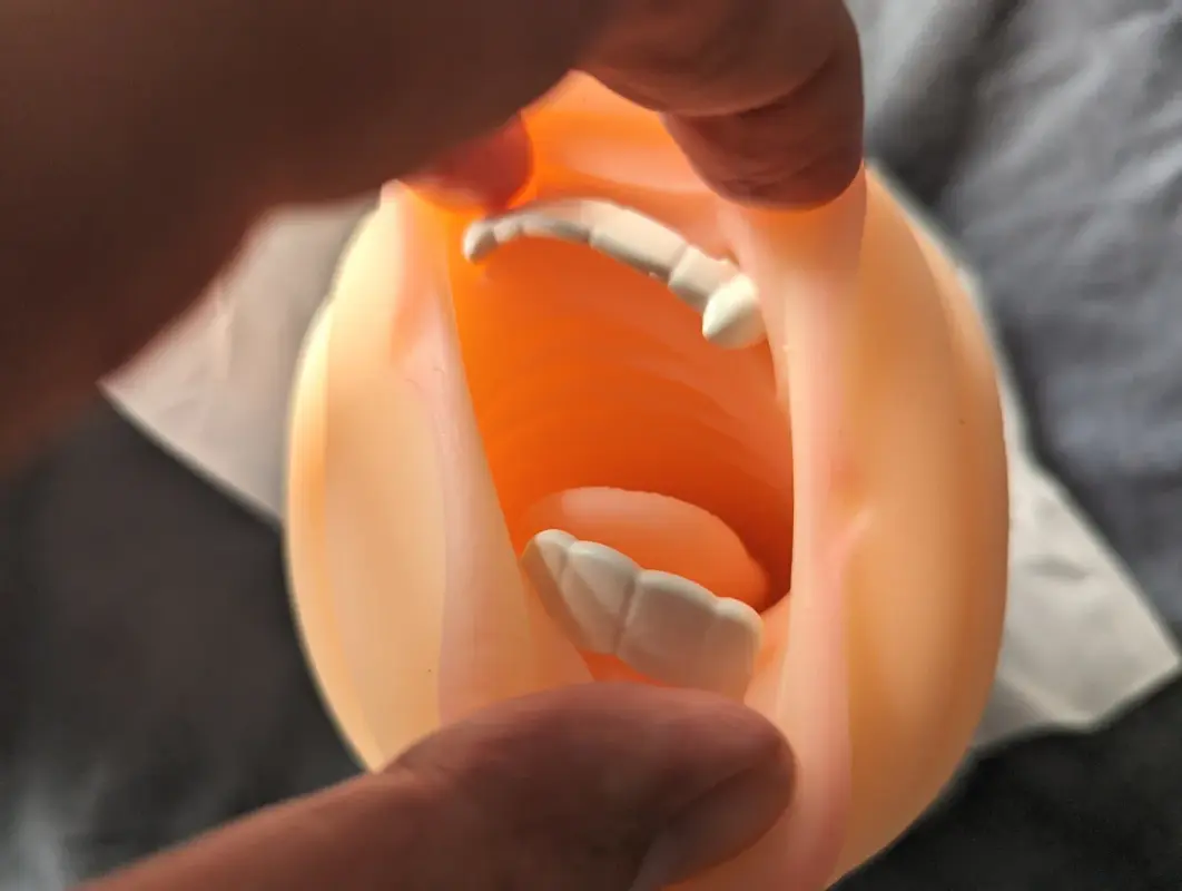Если раскрыть рот Незуко, видны клыки, как в аниме. Не слишком большие, но характерные на превращённой Незуко:
