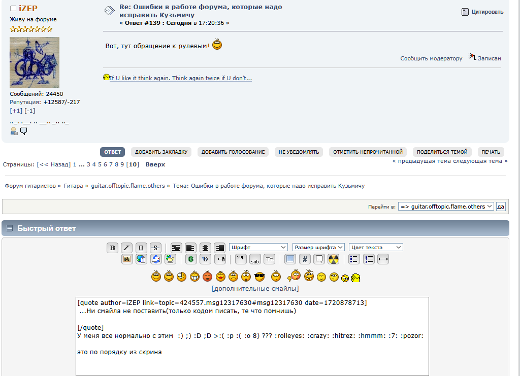 ...Ни смайла не поставить(только кодом писать, те что помнишь)