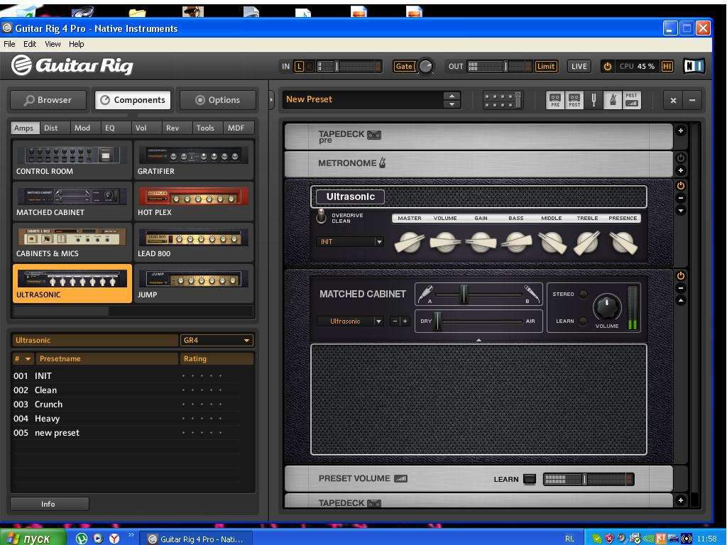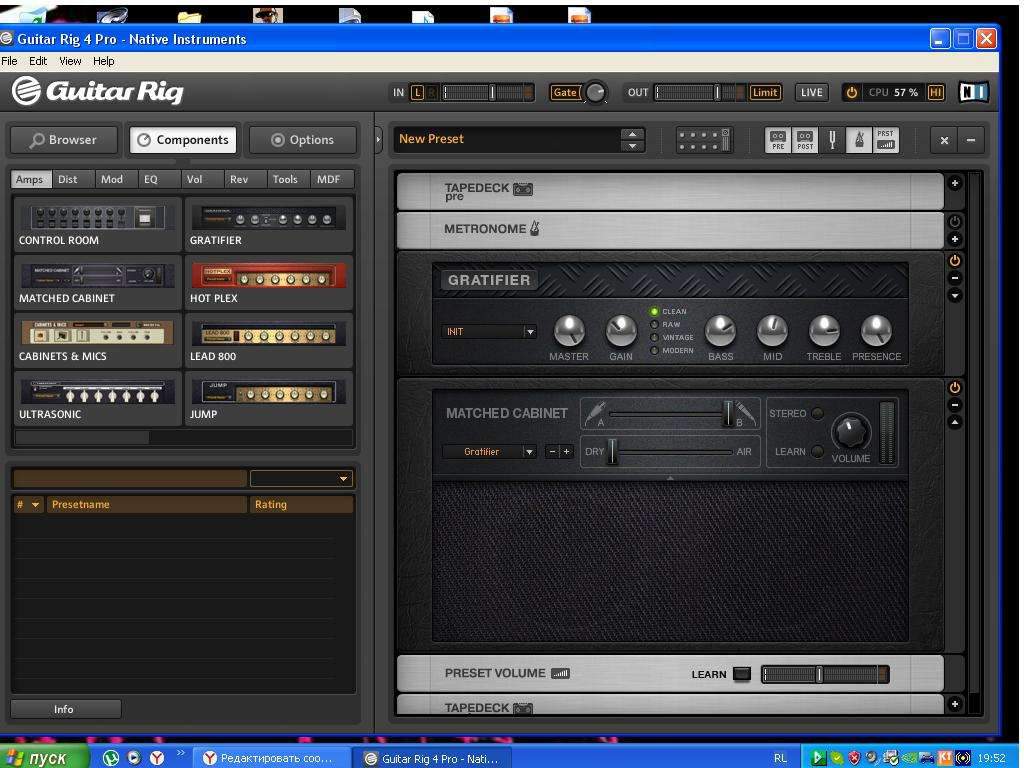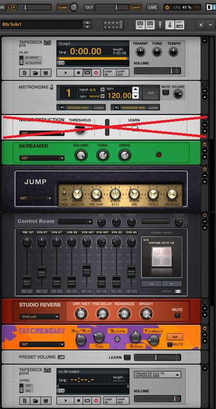 Вот скрин с рига, с работающим нормально воспроизведением/записью и с одним из измененных пресетов, который мне нравится. Noise reduction не к месту, забыл удалить. Psydelay и studio reverb вкл/откл по желанию, все работает.