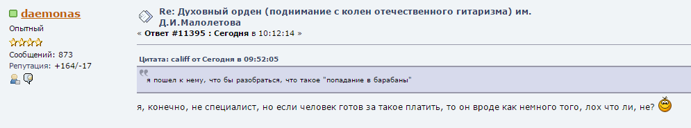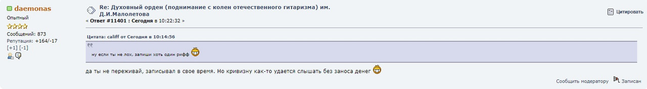 не, не так - вот к примеру ты говоришь, то Хэммет дно и уровень 2 месяца с нуля. Тебе говорят - окей, ответь за базар, сыграй че-нить из Хэммета. А ты тупо сливаешься на "300к вперед" (за такие деньги можно даже Вая уговорить
