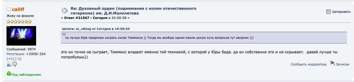 Да я ж не спорю - у меня есть мелкие погрешности, и до ваших Беттенкуртов с Котценами мне как до Китая. И да, я стараюсь улучшать (вернее, старался, ибо сейчас играю крайне редко) технику. Но этих косяков обычный слушатель даже близко не слышит - это у вас с Юрой бзики на почве подобных тонкостей. Если вдруг у меня на горизонте замаячит перспектива работы на каком-то мега-профессиональном уровне, то, конечно, будет смысл подумать о доведении нюансов до аналогичного уровня. Но такой возможности, скорее всего, не будет. Поэтому я и не вижу смысла задрачивать ваши тайминги до уровня робота. Чего и вам, как говорится, желаю.