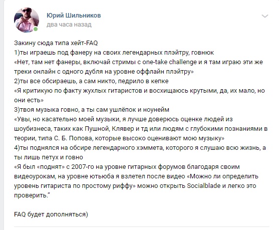 ты лучше расскажи, как ты мне затирал про игру на гитаре и вызывал на баттл Маклауда, а по факту оказался жопоруким бякирем. .