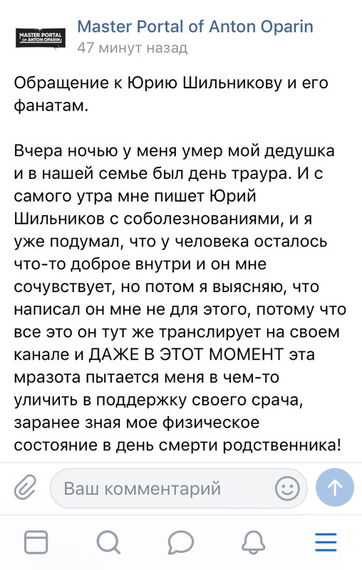 Попалось мне шиловское соболезнование на ютюбе, в котором он в очередной раз сливает личную переписку, комментируя своими фантазиями...