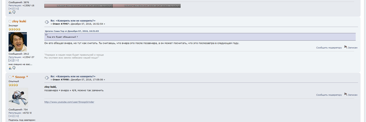 Без Калифыча даже чуток скучновато. Раньше, бывало, отойдешь на несколько часов от компа, возвращаешься, а там уже 10 новых страниц какого-то совершенно восхитительного мракобесия под синей аватаркой. Помню, как он сначала прохоливарил мне бутылку вискаря, а потом еще пару месяцев холиварил, доказывая, что он не проиграл спор. Ну, и, конечно, обещания записать очередной пруф "на днях, как освобожусь" - это и вовсе хит.