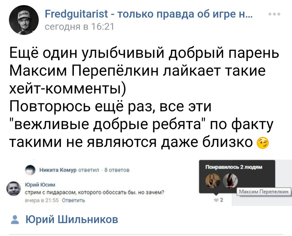 Возможно, но с калычем обоюдно рубиться было весело) А то что сейчас здесь происходит, реально позор, судя по нескольким последним страницам (особенно Vicious, по ходу самый поехавший). Вы рассказываете друг другу, какой юра нехороший, и остановиться не можете