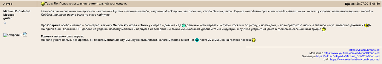так вроде весь цимес всех антифредовских выпадов (по крайней мере опаринских), в том, чтобы применить к фреду методы самого фреда, опарин как раз не упирает на то, что лишь "борется за правильный гитаризм невзирая на лица", а приструняет конкретно фреда за неэтичное поведение (а не за склейки)