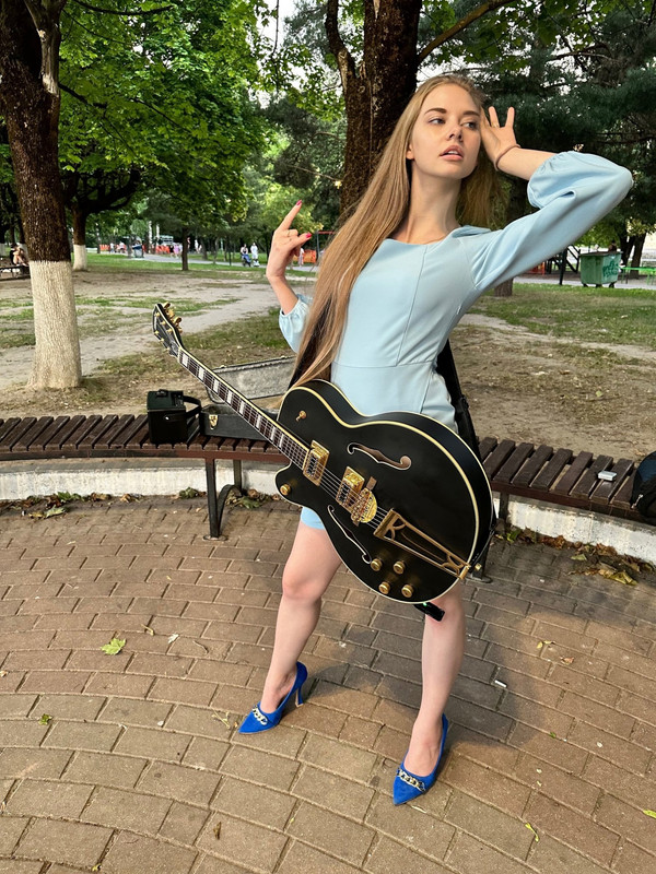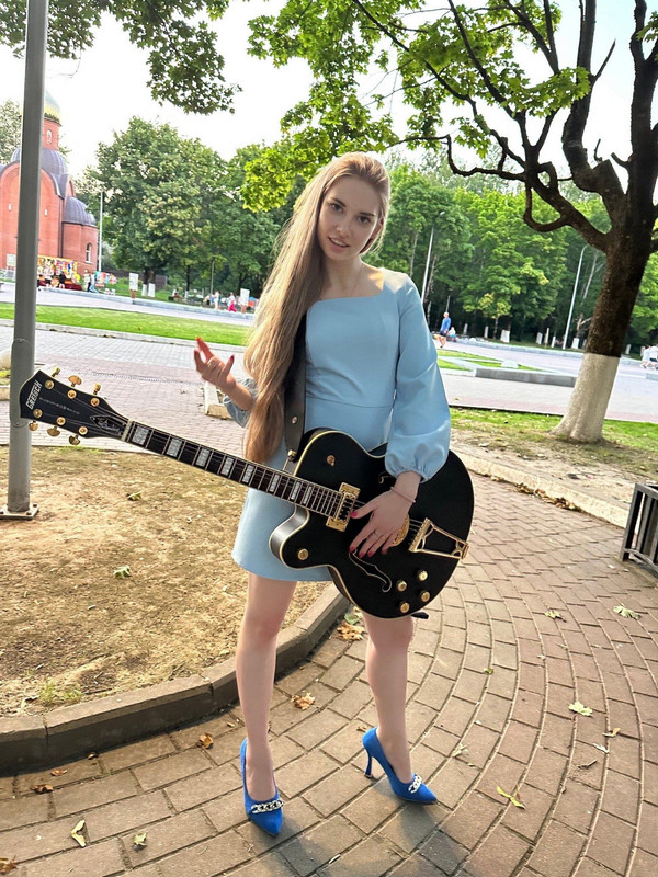 Для неумелой у неё слишком хорошая гитарка. Хотя, конечно, может просто дали подержать для фото. Но я бы не дал! Вдруг уронет или ещё ккую коцку сделает.